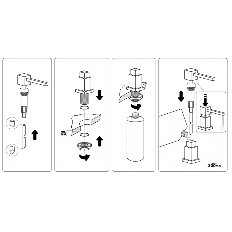 Стильный встраиваемый дозатор для жидкого мыла и моющих средств. Современный стиль, направление Hi-tech. Изготовлен полностью из нержавеющей стали марки AISI-304. Удобная система быстрого пополнения мыла сверху. Нажатием одной рукой получаете необходимо количество моющего средства.