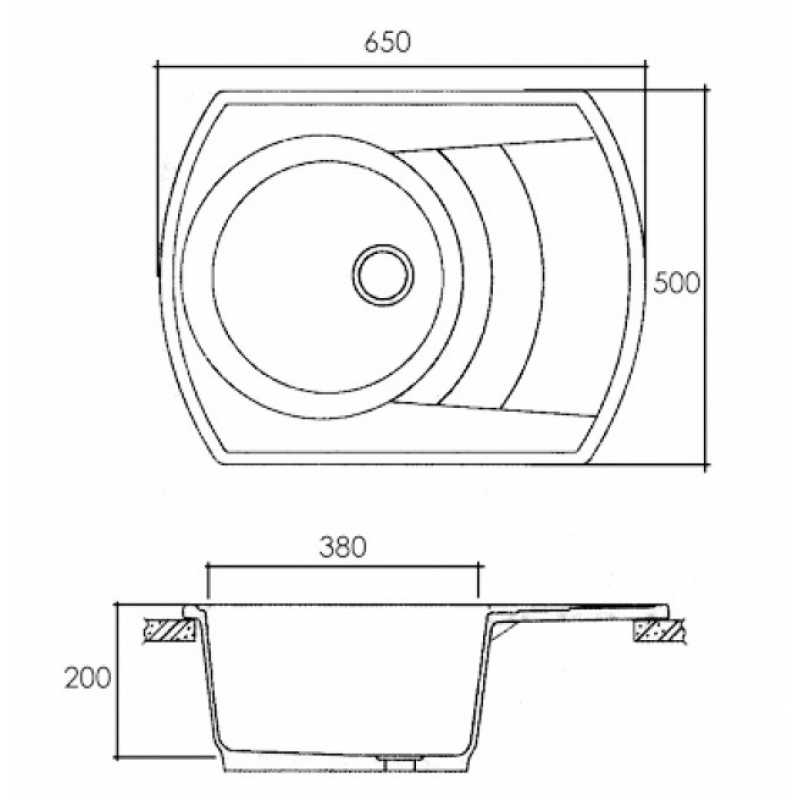 GF-R-650 L серый, 650*500мм, GRANFEST Мойка овал., мрамор, врезн.