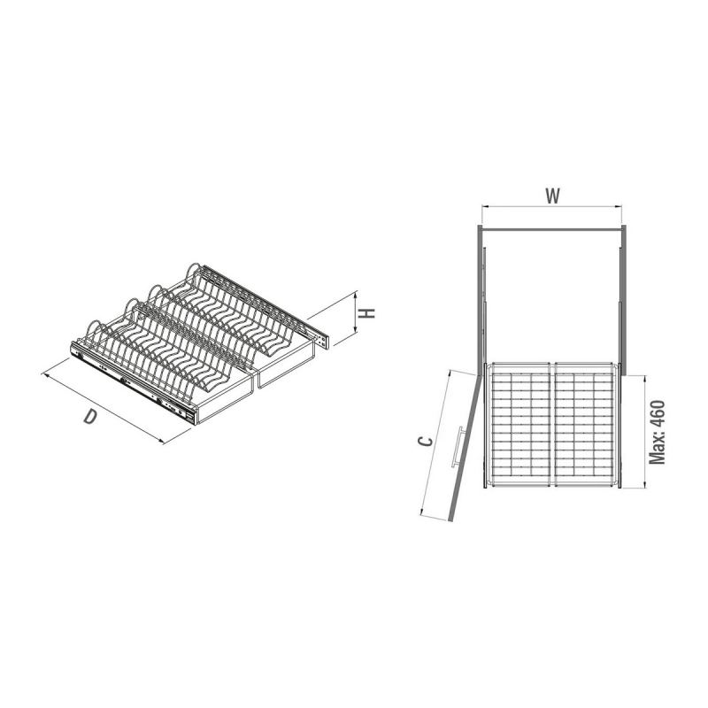 Сушка выдвижная для тарелок, как и выдвижные корзины устанавливается в кухонный шкаф. Позволяет удобно хранить кухонную посуду и утварь.