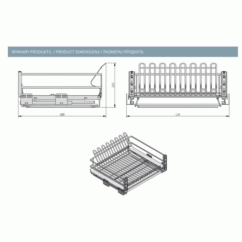 - Шариковые направляющие скрытого монтажа L=450 мм в комплект не входят и приобретаются отдельно. Обращаем внимание, что к данной сушилке подходят только специальные фирменные направляющие GTV, артикул производителя - PB-OC450BO (ссылка на этой странице, в блоке Аксессуары/Сопутствующие товары).