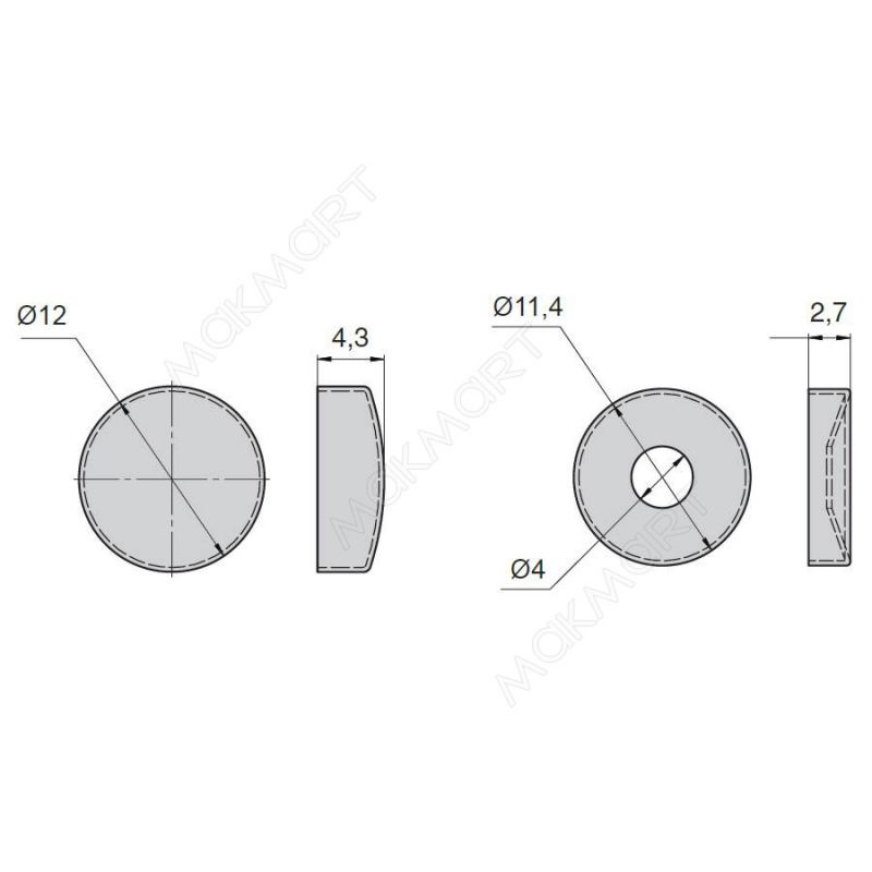 Декоративная крышечка d.12мм (с базой для шурупа), отделка латунь