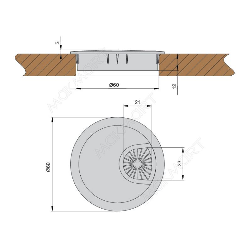 Заглушка кабель-канал, d.60, отделка хром матовый
