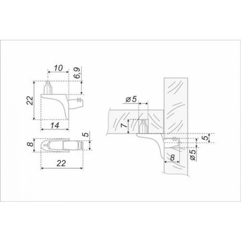 Полкодержатель металлический с фиксирующим трехгранным штифтом.