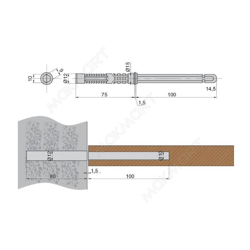 - дюбель 12х72 - 1 шт.
