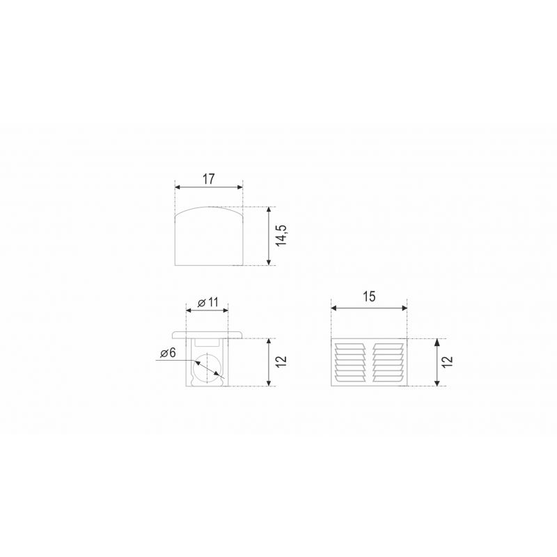 Для монтажа полки необходимо в плитном материале подготовить отверстие 15х12 мм, установить пластиковый корпус полкодержателя, прикрепить металлический фланец к боковой стенке мебели на саморез или евровинт MT03/06/6,3*11Cr/0 и надеть полку на фланцы.