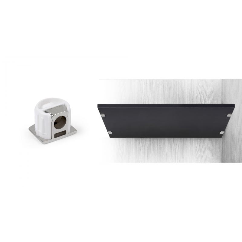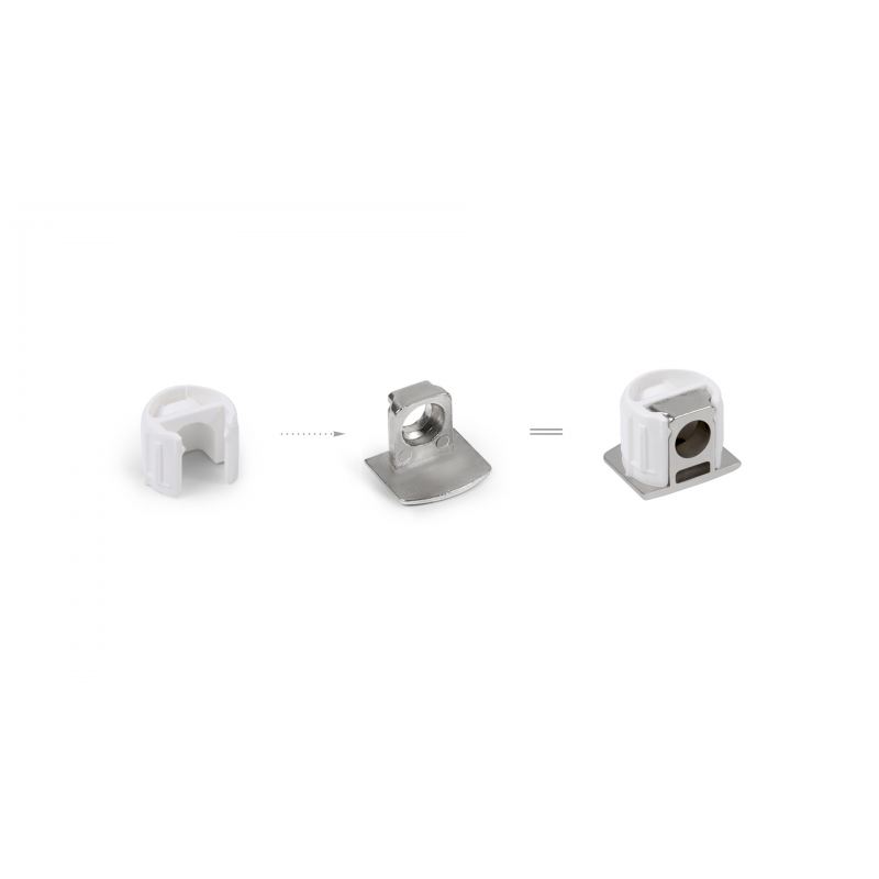 Полкодержатель предназначен для монтажа полок толщиной от 16 мм в мебельные модули любого стиля и направления. Металлический фланец полностью скрывает пластиковые элементы полкодержателя, оставляя на виду лишь лаконичную часть детали.