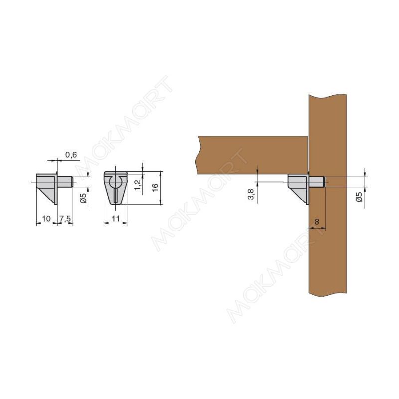 17855/701/5 Полкодержатель с упором, отделка транспарент