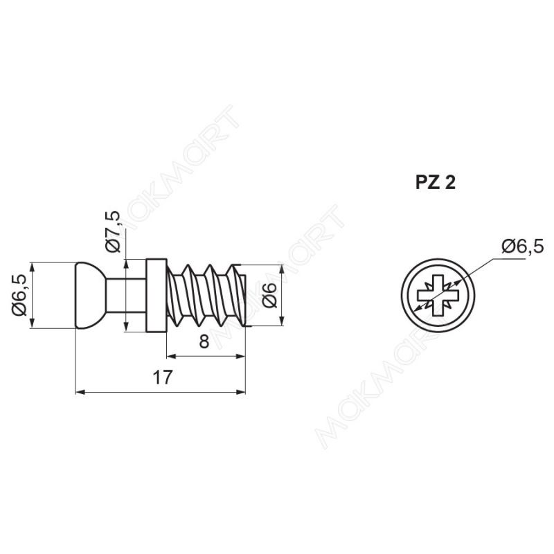Шток-евровинт 8мм для стяжки эксцентриковой V20 и VG20, отделка цинк