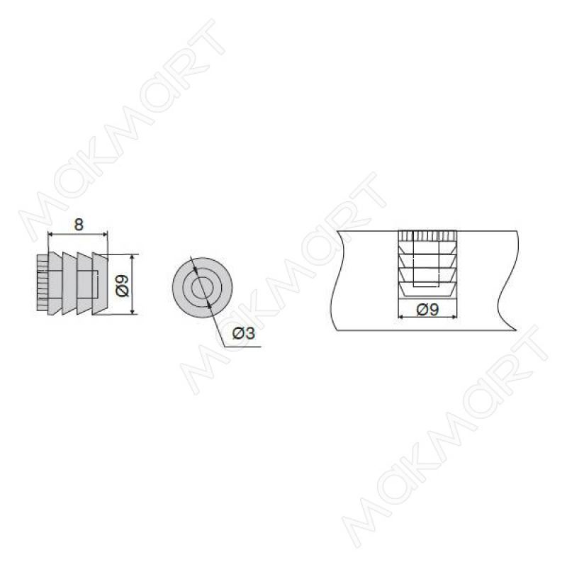 Бусола под шуруп, d.9, Н.8, отделка нейтральная