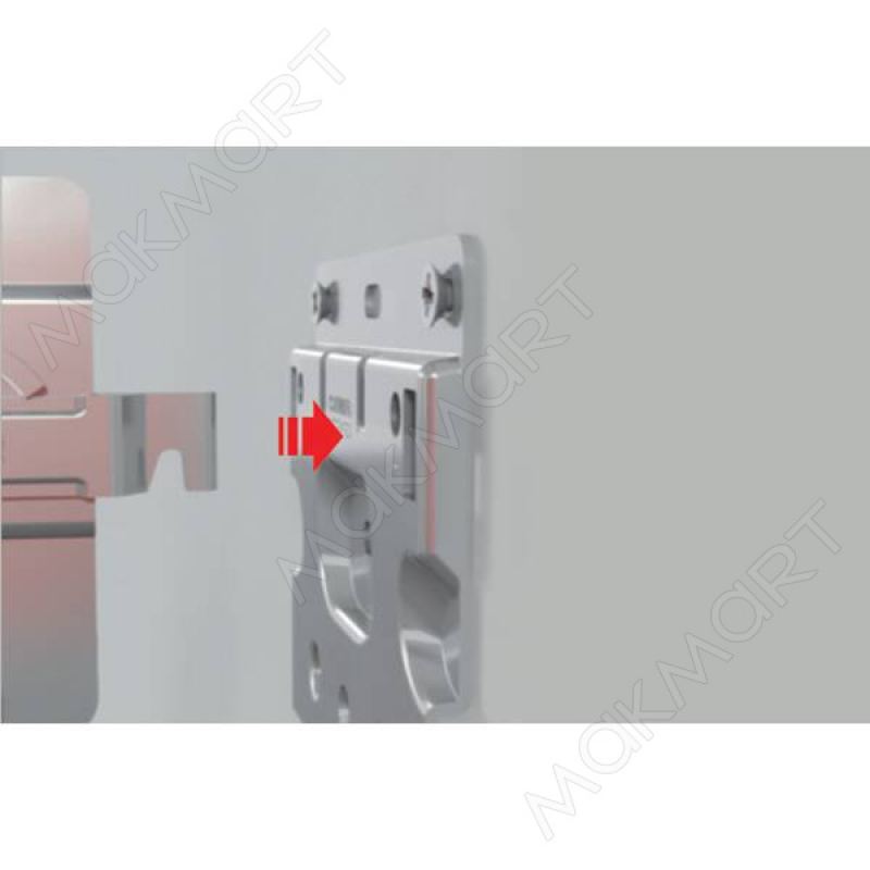 Применяется в подвесных тумбах с внутренними ящиками. За счет того, что данный подвес врезной, ящики не будут его цеплять при выдвижении. Данный подвес совместим также с навесными каркасами, у которых глубина меньше высоты.