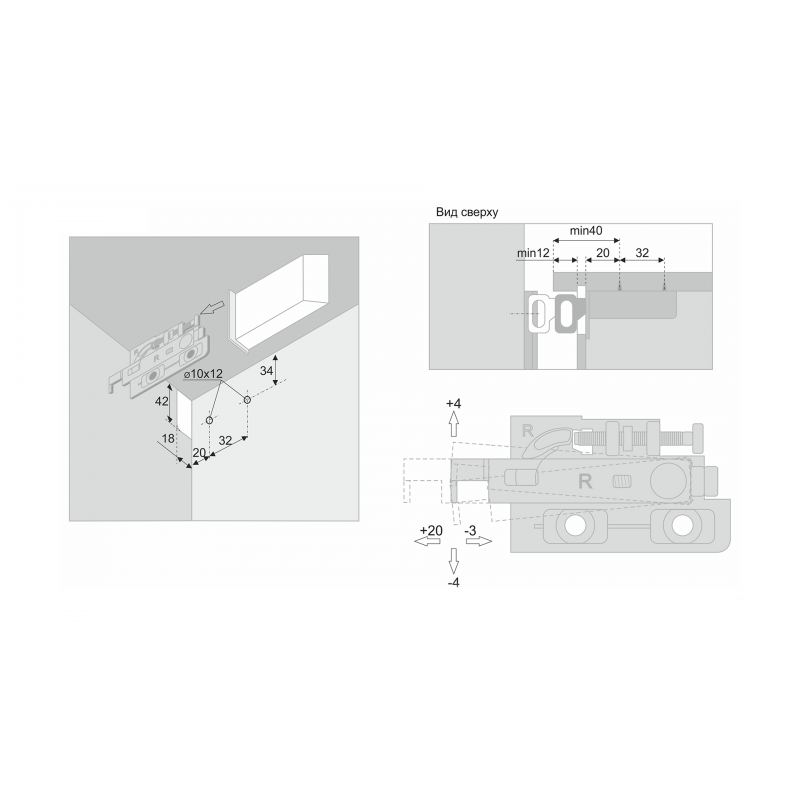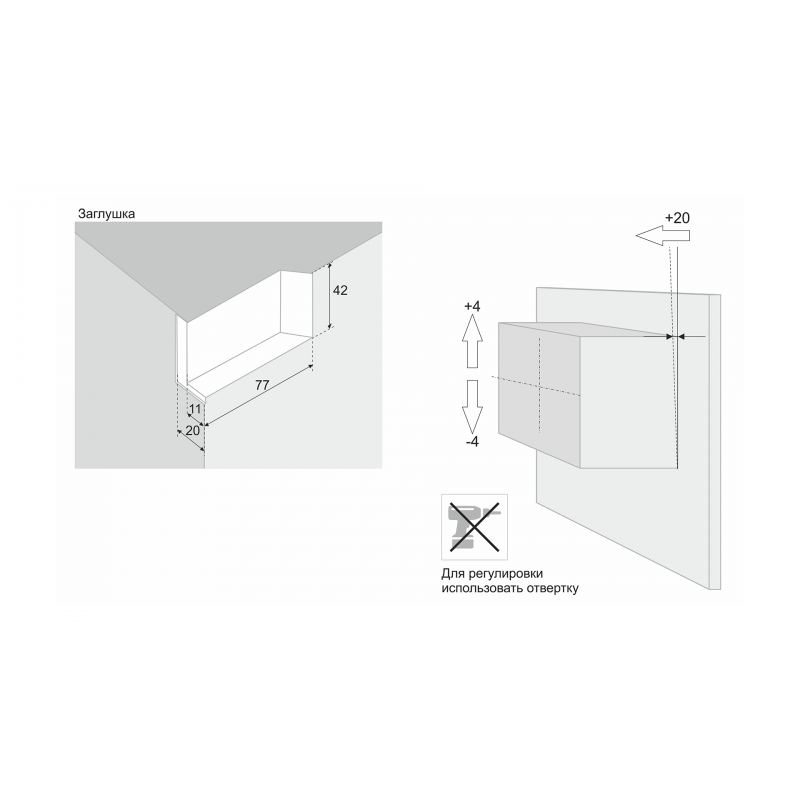 СН05 — навес с металлическим корпусом для верхних баз мебели. Модель устанавливается на боковой стенке внутри мебельного изделия и фиксируется крючком на ответной планке, закреплённой к стене. Ответные планки СНН01 и СНН02 продаются отдельно. Пара навесов CH05 выдерживает внушительную нагрузку в 95 кг и позволяет отрегулировать модуль по вертикали +/- 4мм и по горизонтали от плоскости стены +20 мм.