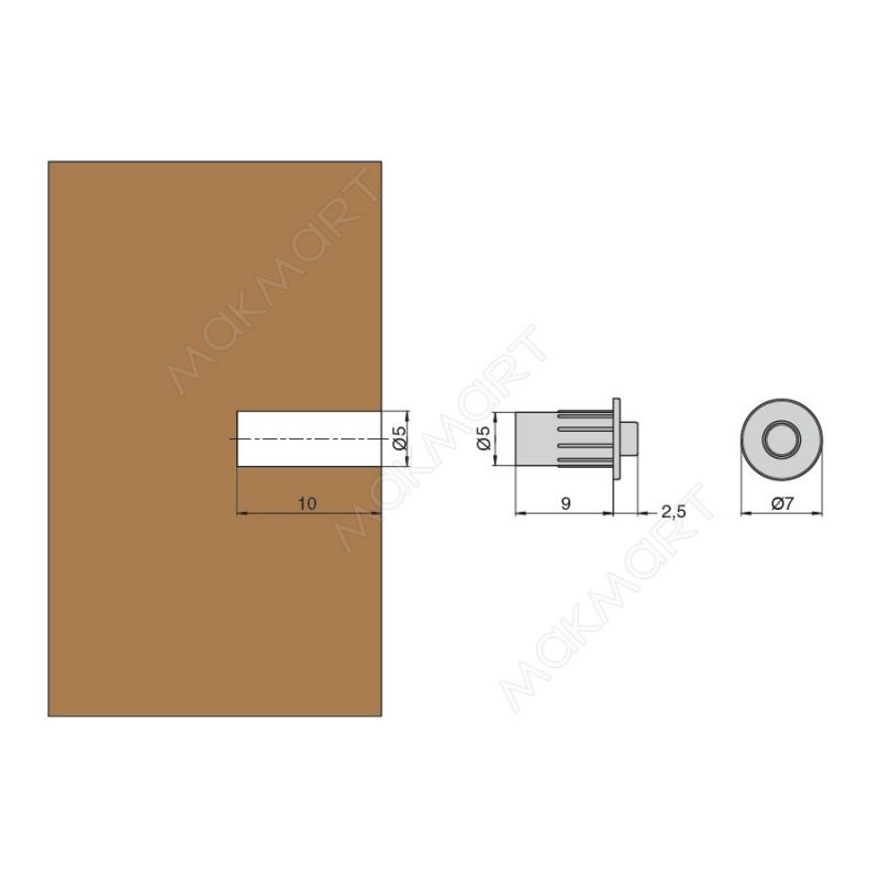 Смягчитель удара врезной d.5мм, цвет орион серый