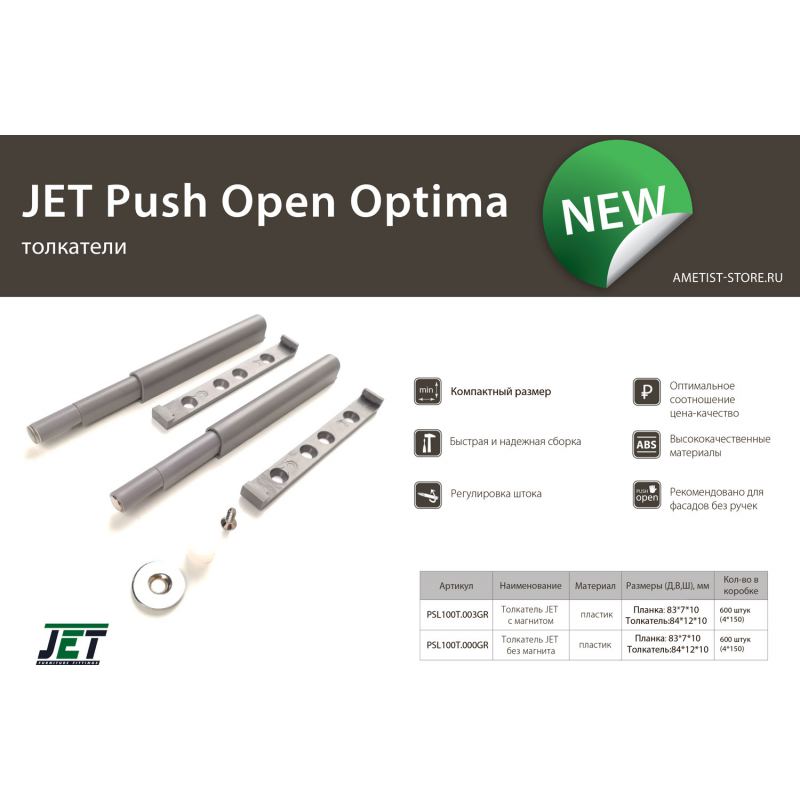 Толкатели JET Push OPEN Optima – лучшее решение в доступном ценовом сегменте для фасадов без ручек. Качество материалов и сборки гарантируют долгий срок службы. Индивидуальная упаковка гарантирует сохранность деталей от потери и защищает от потертостей и царапин. Толкатели JET Push OPEN Optima можно легко и быстро установить.