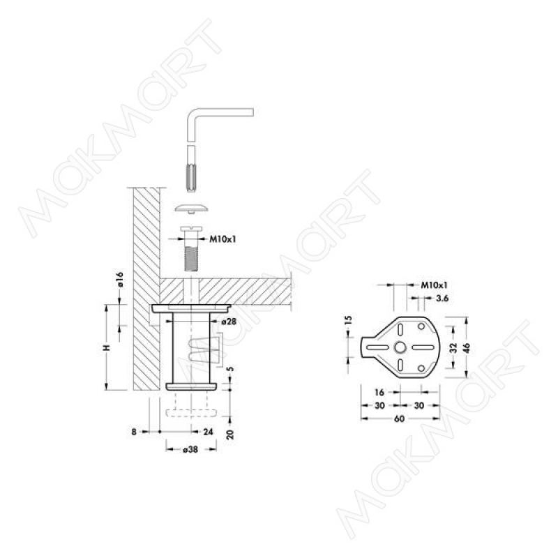 Ножка опорная Н60, накладная