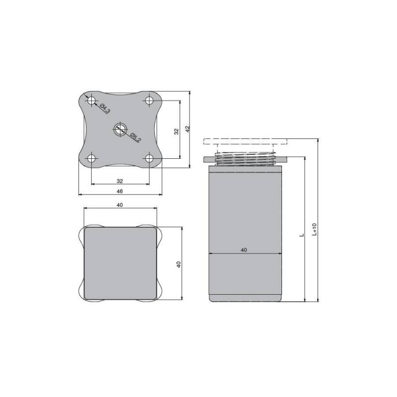 Ножка декоративная 40х40, h.60мм, алюминий анодированный