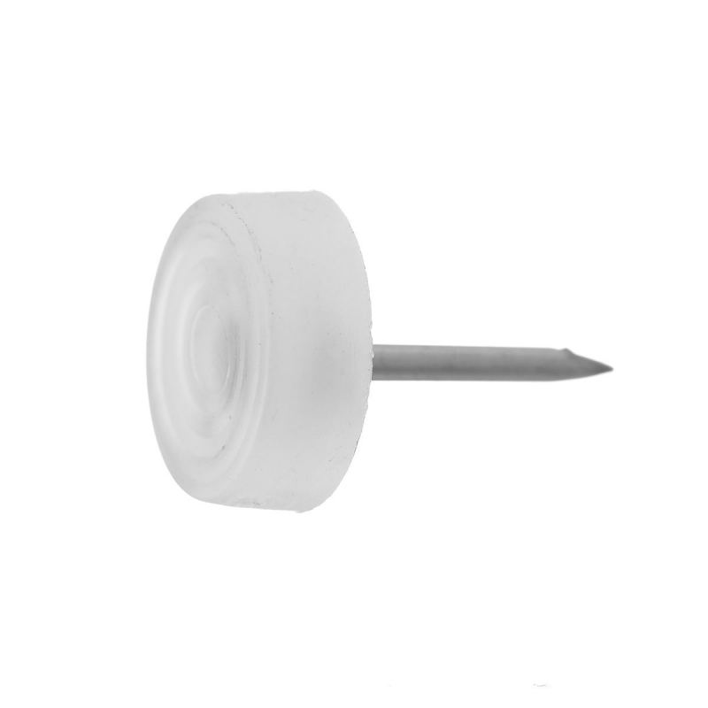 Подпятник на гвозде, прозрачный D15 мм - функциональная подкладка под нижний торец мебельного изделия, служащая для защиты напольного покрытия от повреждений при перемещении мебели, а также предохраняющая низ мебели от воздействия влаги. Подпятник крепится к мебели посредством вбивания.