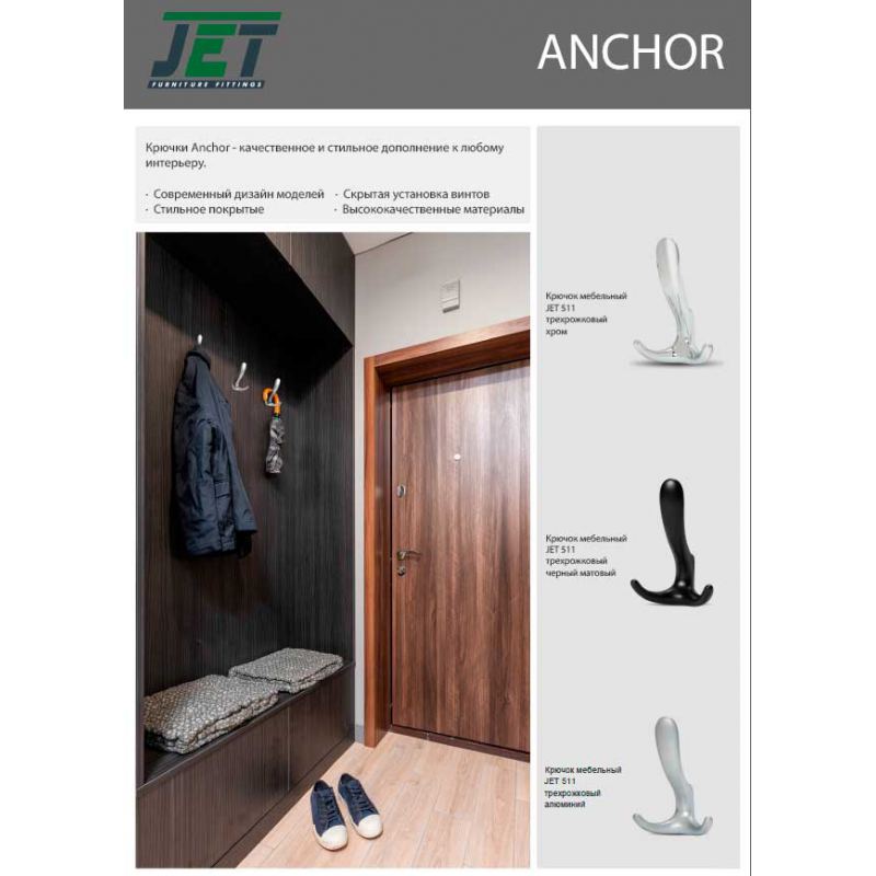 Крючок мебельный JET 511 трехрожковый замак хром Новинка