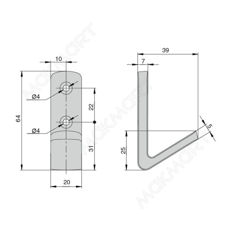 M7201.MSN Крючок, отделка Сталь шлифованная