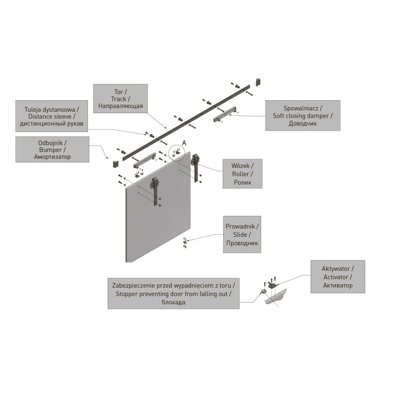 Раздвижная система LOFT (ролики х2, направл х1, дорожка 2м, дистанц втулка х5, отбойники х2, защита