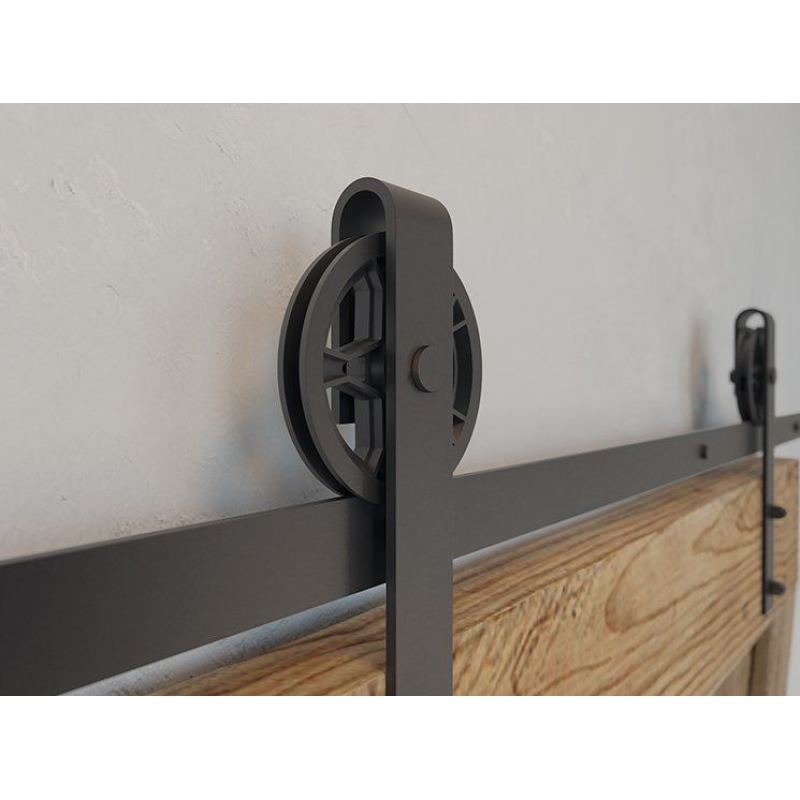 Раздвижная система LOFT (Ролики x2, направляющая x1, дорожка 2 м, дистанционная втулка x5, отбойники x2, защита от выпадения дверки x2, доводчик x2, активатор x2, комплект шурупов и болтов) - подвесная конструкция, используемая для эксплуатации гардеробных или межкомнатных раздвижных дверей.