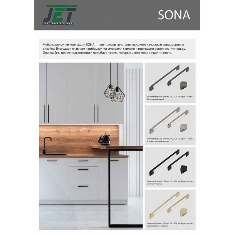 Мебельные ручки коллекции Sona - это пример сочетания высокого качества и современного дизайна. Благодаря плавным изгибам ручки смотрятся стильно и прекрасно дополняют интерьер. Они удобны при использовании и подойдут людям, которые ценят моду и практичность.