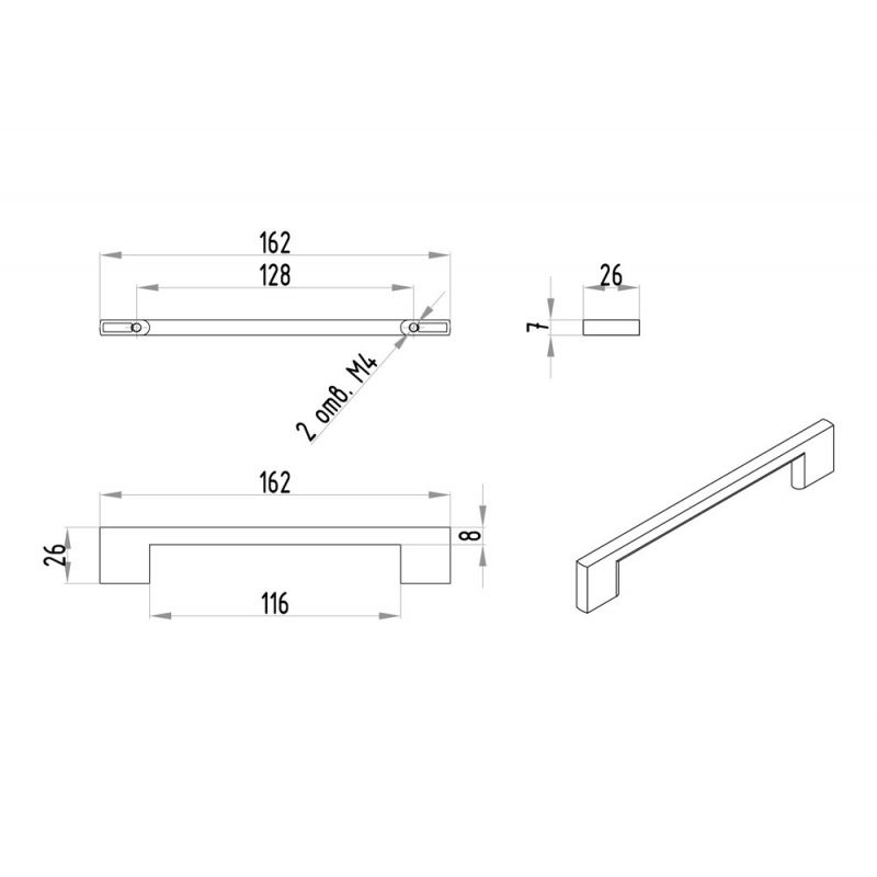 РАЗМЕР Межцентровое расстояние, мм128Длина, мм162Ширина, мм8Высота, мм26