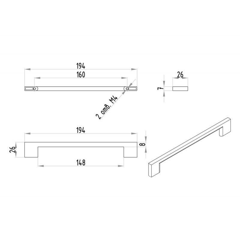 РАЗМЕР Межцентровое расстояние, мм160Длина, мм194Ширина, мм8Высота, мм26