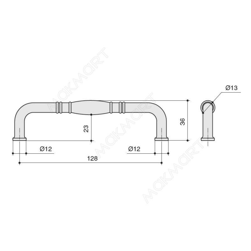 МЕЖЦЕНТРОВОЕ РАССТОЯНИЕ (мм) 128 мм