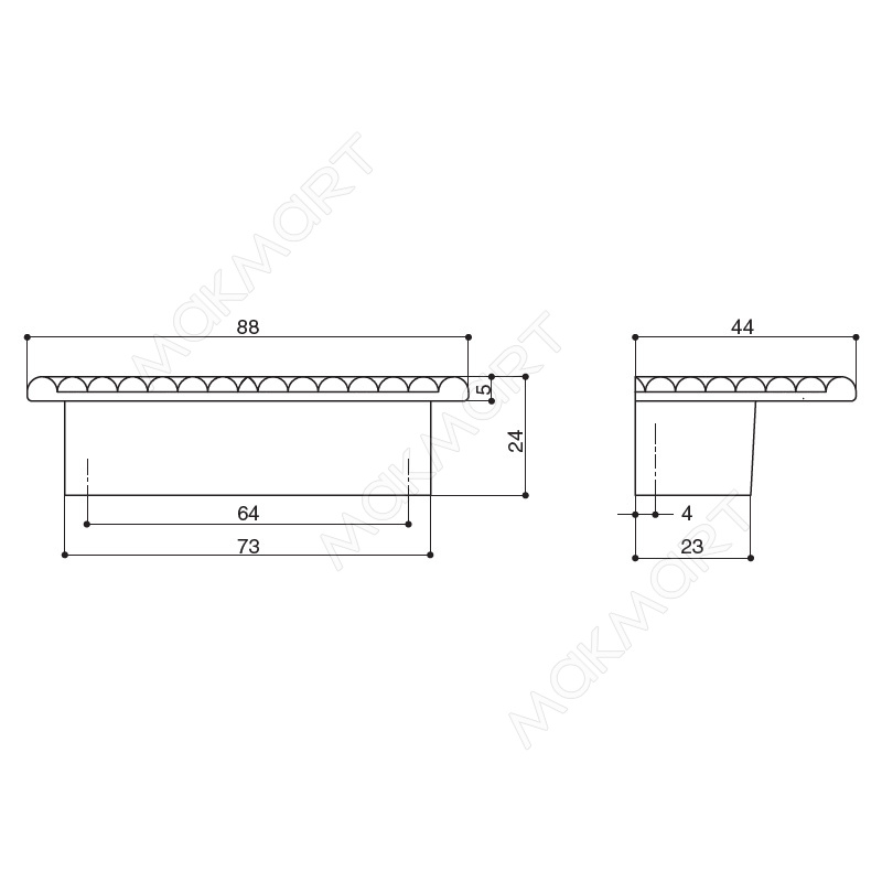 МЕЖЦЕНТРОВОЕ РАССТОЯНИЕ (мм) 64 мм