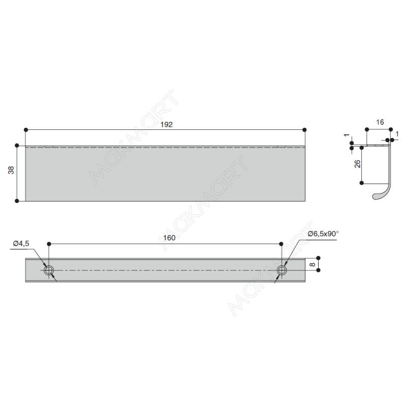 Ручка-профиль накладная L.192мм, отделка черный шлифованный (анодировка)