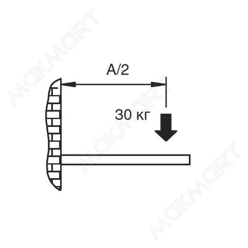 - Максимальная нагрузка указана на один менсолодержатель при условии, что фиксация к стене произведена надлежащим образом, а так же при равномерном распределении нагрузки на расстоянии А/2.