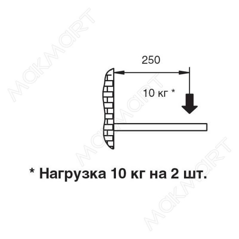 - Максимальная нагрузка указана на два менсолодержателя при условии, что фиксация к стене произведена надлежащим образом, а так же при равномерном распределении нагрузки.