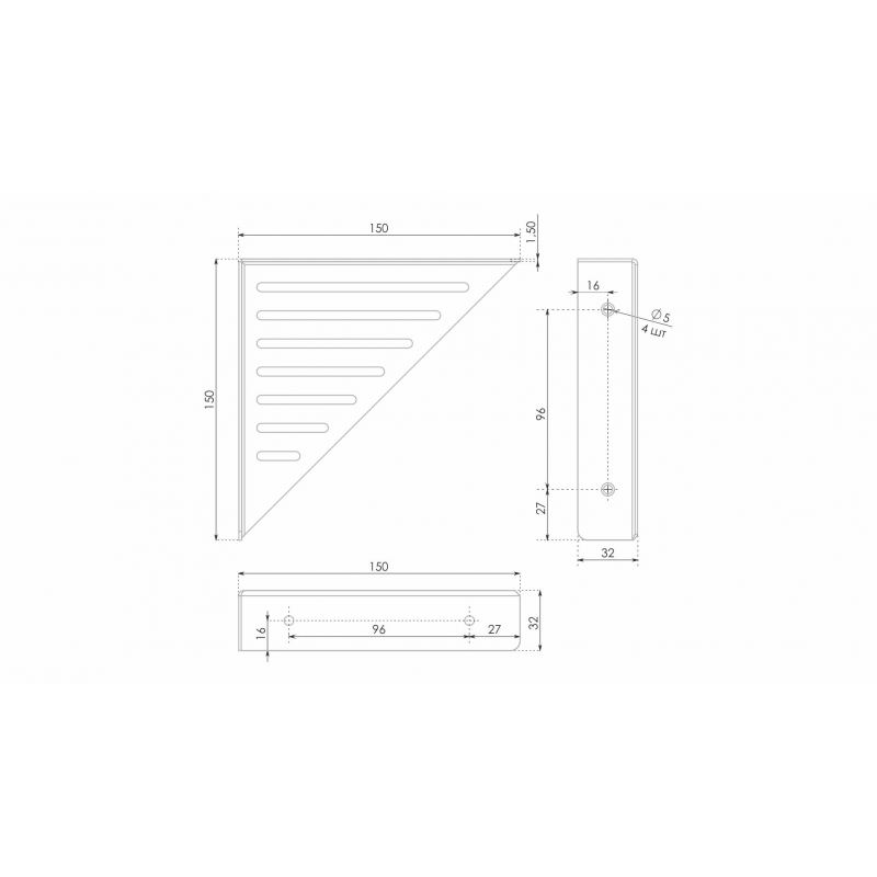 Универсальная конструкция изделия позволит закреплять полки с внутренней стороны полкодержателя, устанавливая полки между ними или под полками. За счёт декоративных горизонтальных отверстий по всей конструкции — модель станет отличным решением для таких стилей, как — модерн, лофт, гранж.