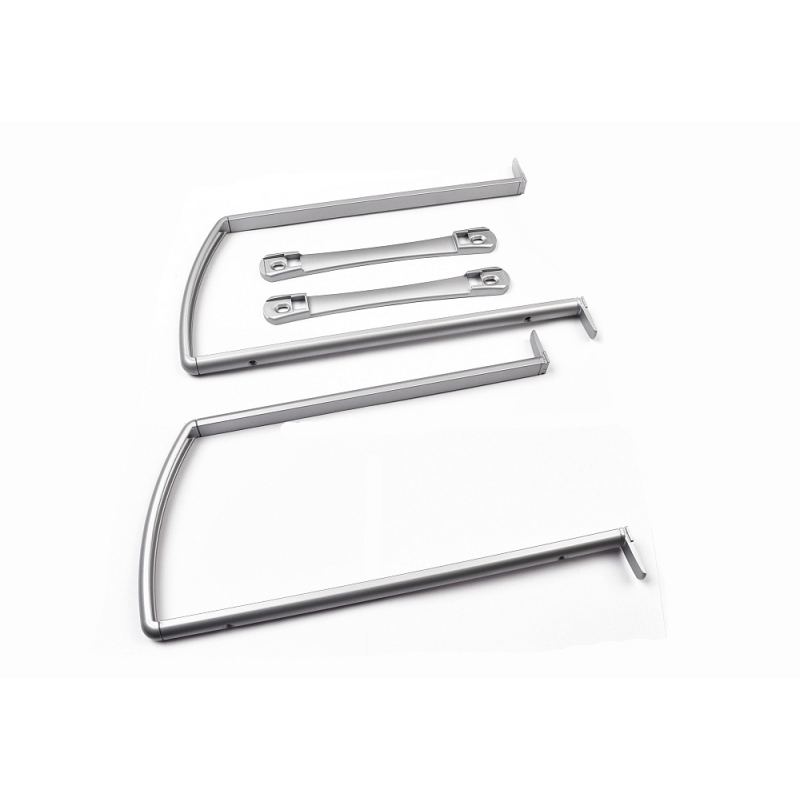 В комплекте: 2 полкодержателя, 2 стеновые планки, 4 дюбеля, 4 стеновых самореза, 2 регулировочных планки, 4 самореза.