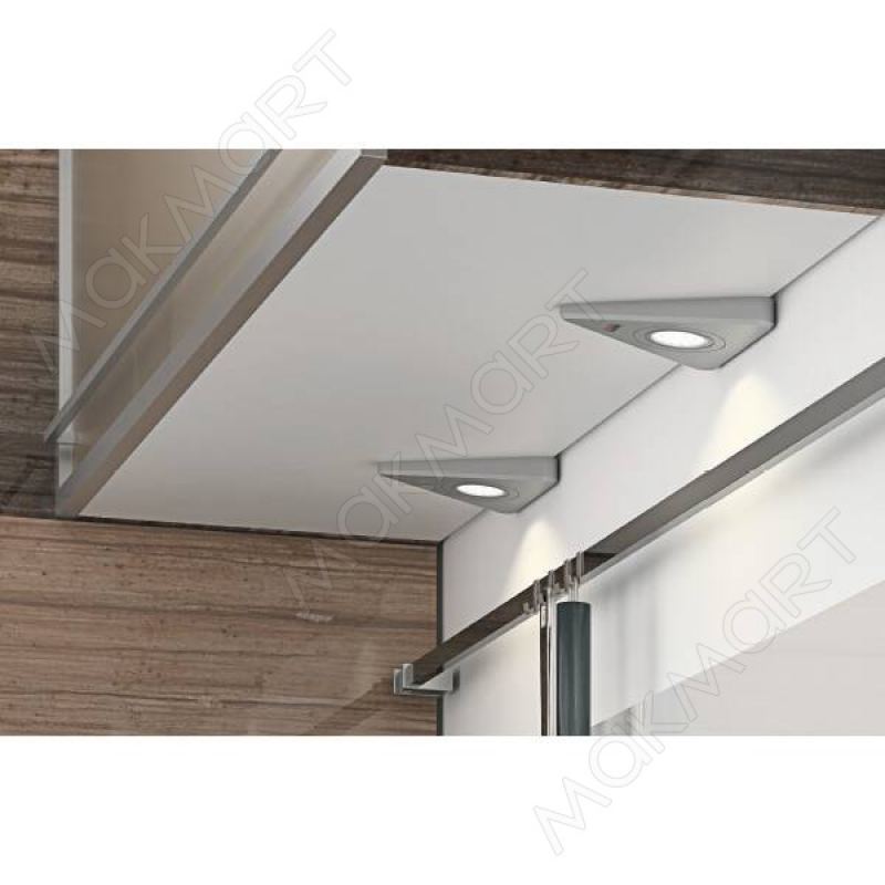 Комплект накладных светильников предназначен для функционального освещения мебели. Яркость освещения достигается с помощью специальных линз, которые усиливают светоотдачу. Возможно два варианта крепления: при помощи шурупов или на двухсторонний скотч.