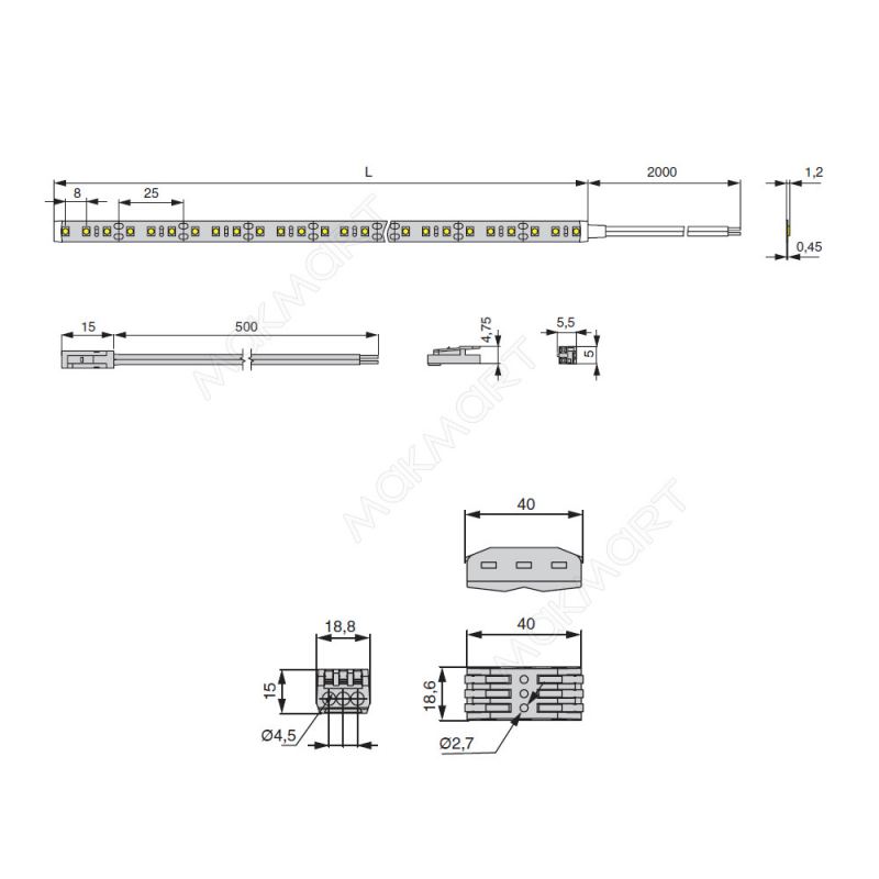 - провод соединительный 500 мм с коннектором L813 для подключения к трансформатору с распределительной коробкой.