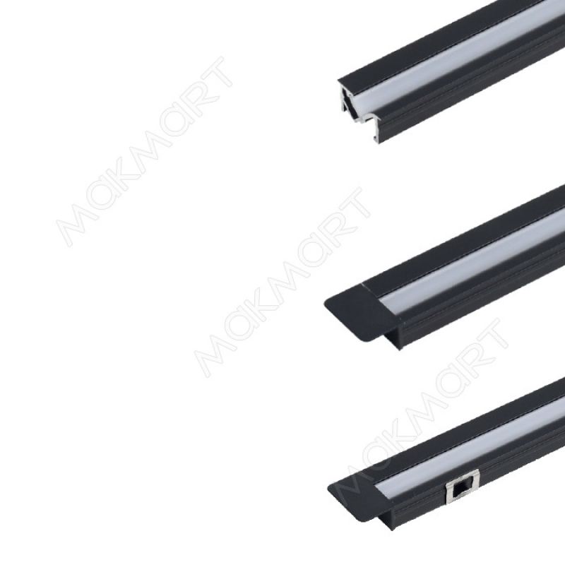 Данный вид профиля применяется для подсветки мебели, торгового и рекламного оборудования. Благодаря установке ленты под наклоном световой поток направляется во внутреннее пространство мебели и не слепит глаза. Тонкая полоса рассеянного, без эффекта видимых точек, света подчёркивает утончённость и лёгкость мебели. Лёгкий и прочный профиль изготовлен из алюминия и представлен в отделке черная (анодировка). Длина профиля – 3100 мм.