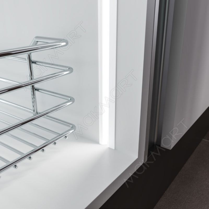Данный вид профиля применяется для подсветки мебели, торгового и рекламного оборудования. Благодаря установке ленты под наклоном световой поток направляется во внутреннее пространство мебели и не слепит глаза. Тонкая полоса рассеянного, без эффекта видимых точек, света подчёркивает утончённость и лёгкость мебели. Лёгкий и прочный профиль изготовлен из алюминия и представлен в отделке белая (покраска). Длина профиля – 3100 мм.