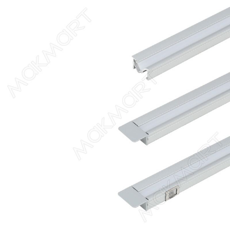 Данный вид профиля применяется для подсветки мебели, торгового и рекламного оборудования. Благодаря установке ленты под наклоном световой поток направляется во внутреннее пространство мебели и не слепит глаза. Тонкая полоса рассеянного, без эффекта видимых точек, света подчёркивает утончённость и лёгкость мебели. Лёгкий и прочный профиль изготовлен из алюминия и представлен в отделке алюминий (анодировка). Длина профиля – 3100 мм.
