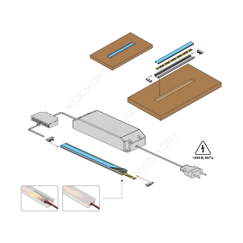 Рассеиватели, заглушки, ленты светодиодные, источники питания и коннекторы заказываются отдельно
