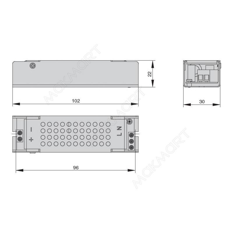 Источник питания 36Вт, 90-264В/12В, IP20, 102*30*22мм