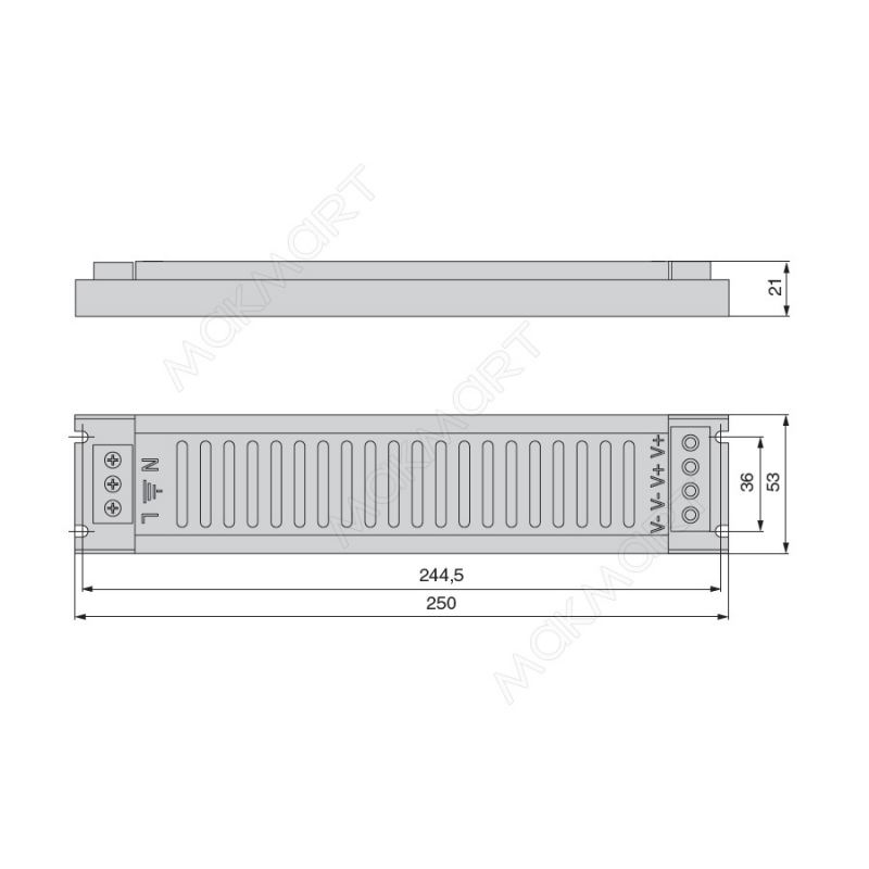 Источник питания стабилизированного напряжения 170В-264/12В для подключения светодиодных лент. Источник питания применяется в декоративном интерьерном освещении и мебельной подсветке, преобразуя стандартное напряжение в сети в 12В. Обеспечивает защиту от скачков напряжения в сети, от перегрева, перегрузки и выхода компонентов из строя. Источник питания имеет терминалы для подключения кабеля и нагрузки. Работает в широком режиме входного напряжения.