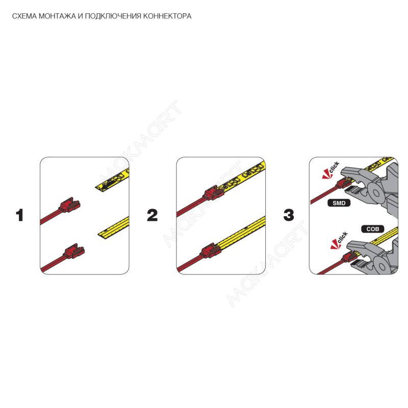 Коннектор быстрозажимной для LED лент COB и SMD(MONO) шириной 8 мм, с проводом 2000 мм 12V/24V, max.