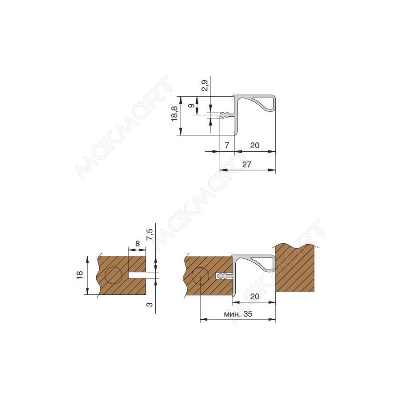 Gola Профиль Г-образный под пропил, для 18мм ДСП, L=3900мм, отделка черный шлифованный
