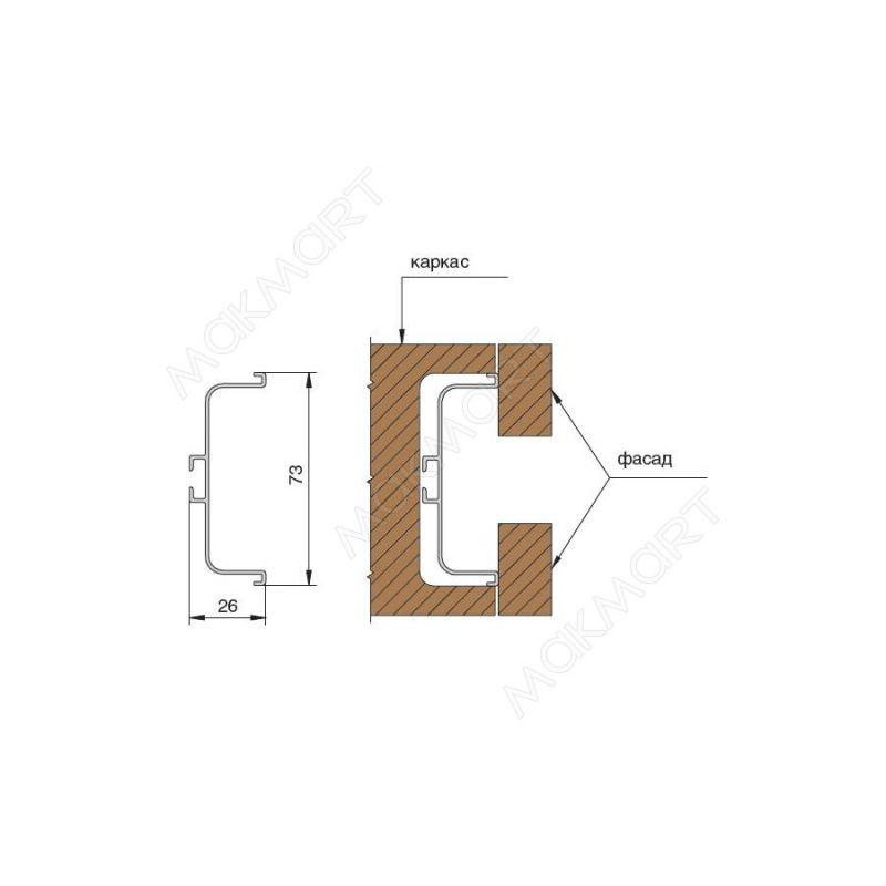 Gola Профиль горизонтальный с двумя закруглениями L=4100мм, отделка золото шл