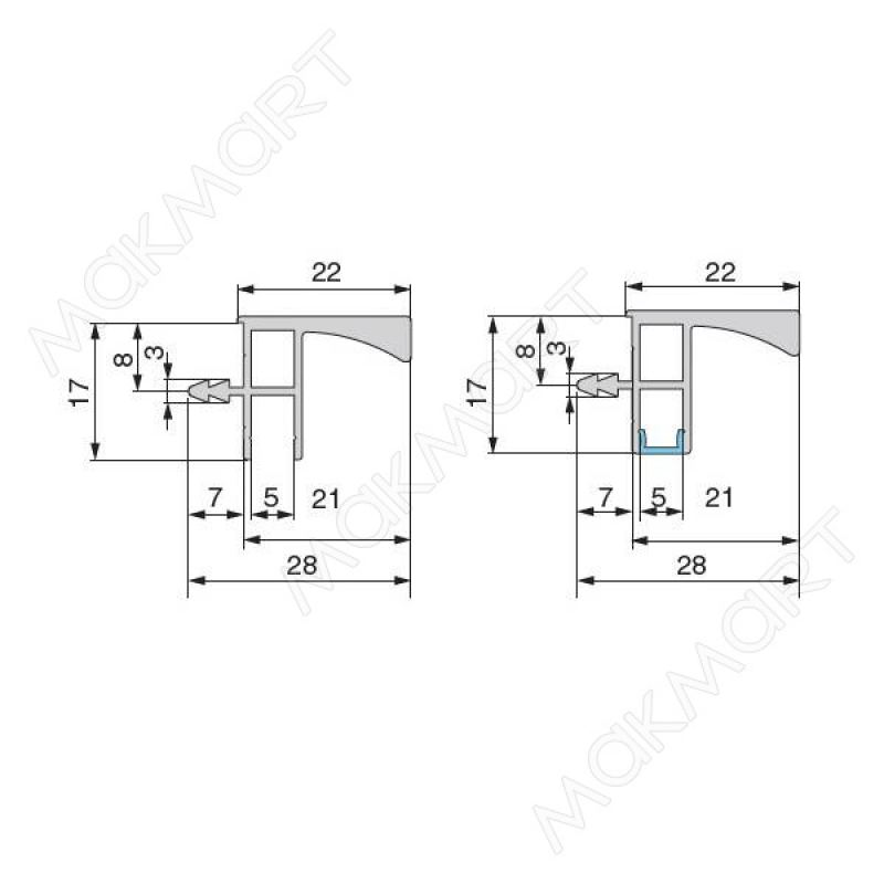 HW.005.097.PR.SLR Профиль 2817 LED GOLA Г-образный под пропил для 16мм ДСП, L=3000мм,алюм