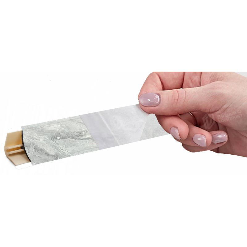 Плинтус состоит из декоративной части и монтажной части из ПВХ с уплотняющими резинками в цвет плинтуса, защищающими от воды и загрязнений.