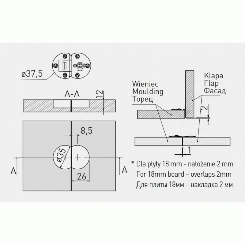 - Для плавного открывания и закрывания фасада, рекомендуется использовать петли с соответствующими подъемниками GTV (PD-MDLIFT-P1-D, PD-MDLIFT-P2-D), приобретаемыми отдельно.