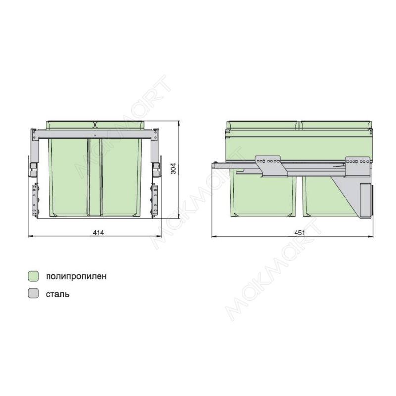 Система хранения в базу 450, Н.304мм (ведра: 2х17л), отделка орион серый