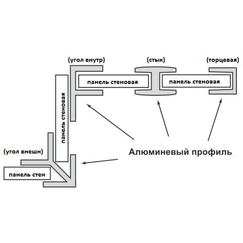 F-образная алюминиевая планка закрывает зазор между плитами, обеспечивает жесткое угловое соединение элементов.